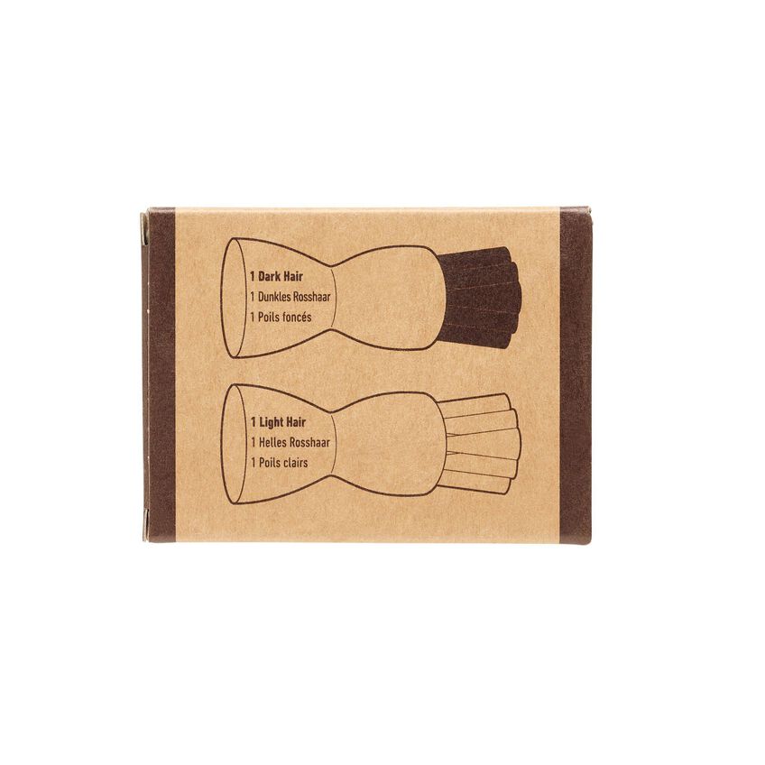 - Brush is made of: beech wood, horse hair (light/silver & dark)